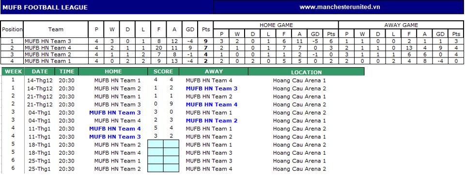 [ Hà Nội ] MUFB League 23 - Vòng 4 | 04-01-2013